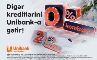 Unibankın 0 % komissiyalı, 2 % endirimli kredit kampaniyası davam edir