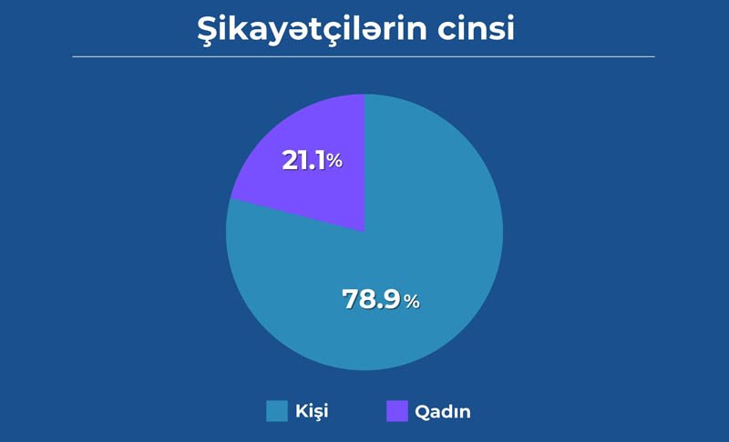 Şikayətlərin 78,9%-i kişilər, 21,1%-i isə qadınlar tərəfindən ünvanlanıb.