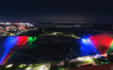 Ниагарский водопад окрашен в цвета флага Азербайджана