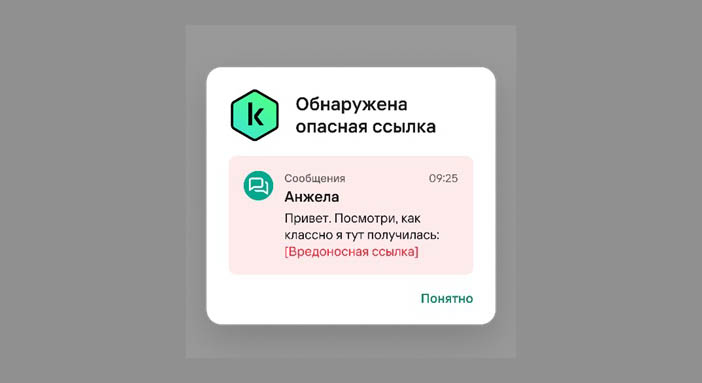Пример уведомления от Kaspersky для Android об обнаружении опасной ссылки
